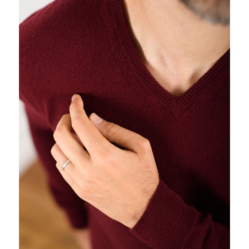 Pull Col V Homme Bordeaux Merinos-cachemire - César