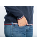 Ses bords côtes bleu blanc rouge rappellent sa fabrication française.
