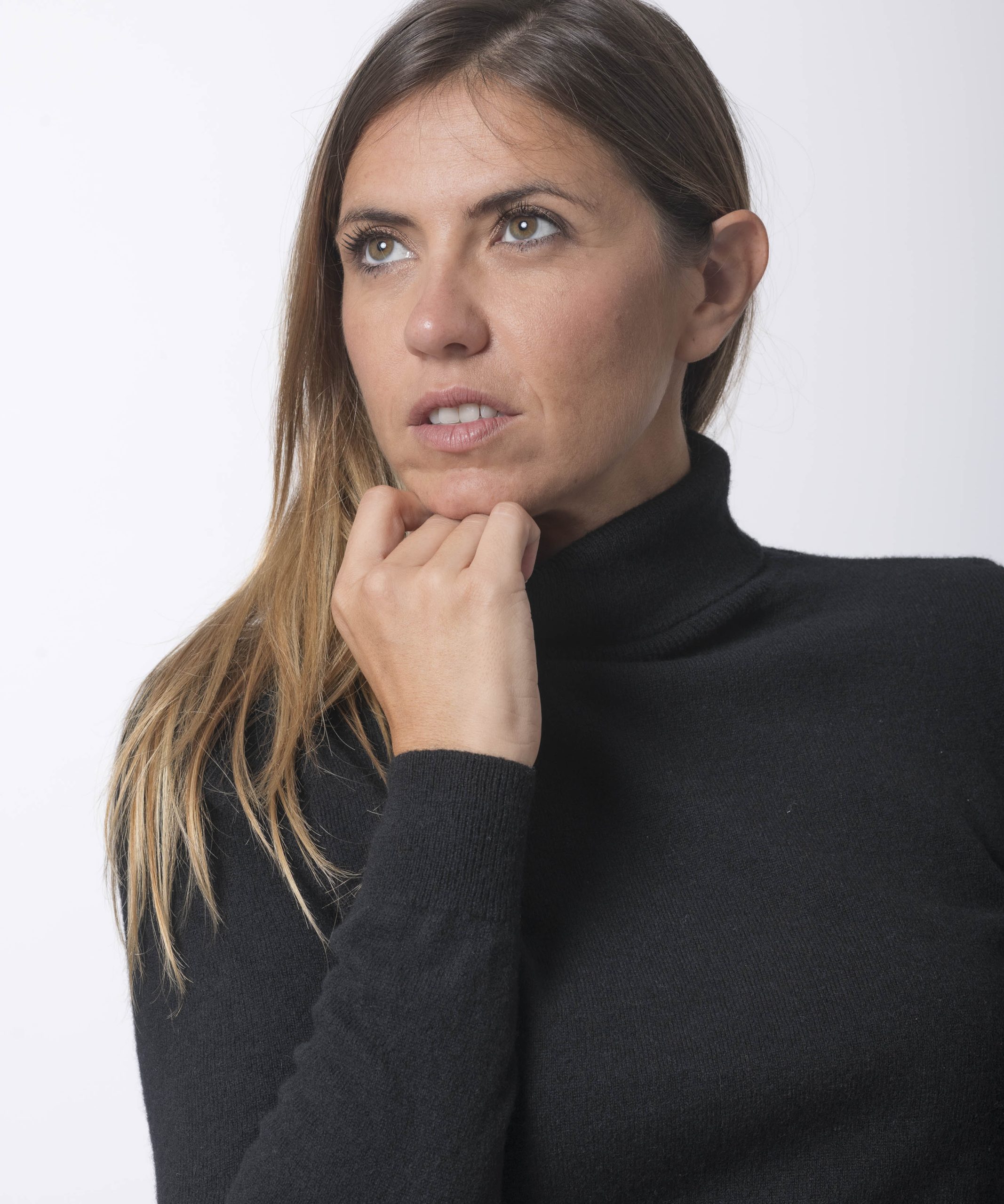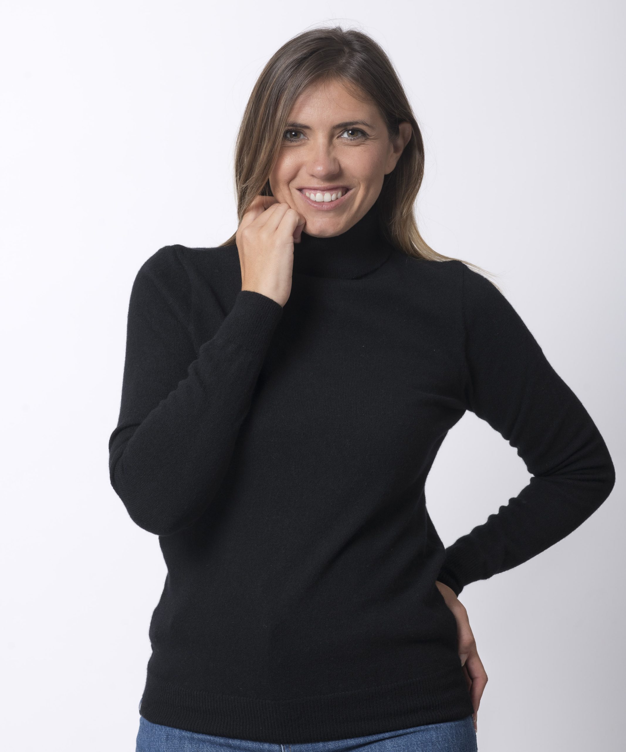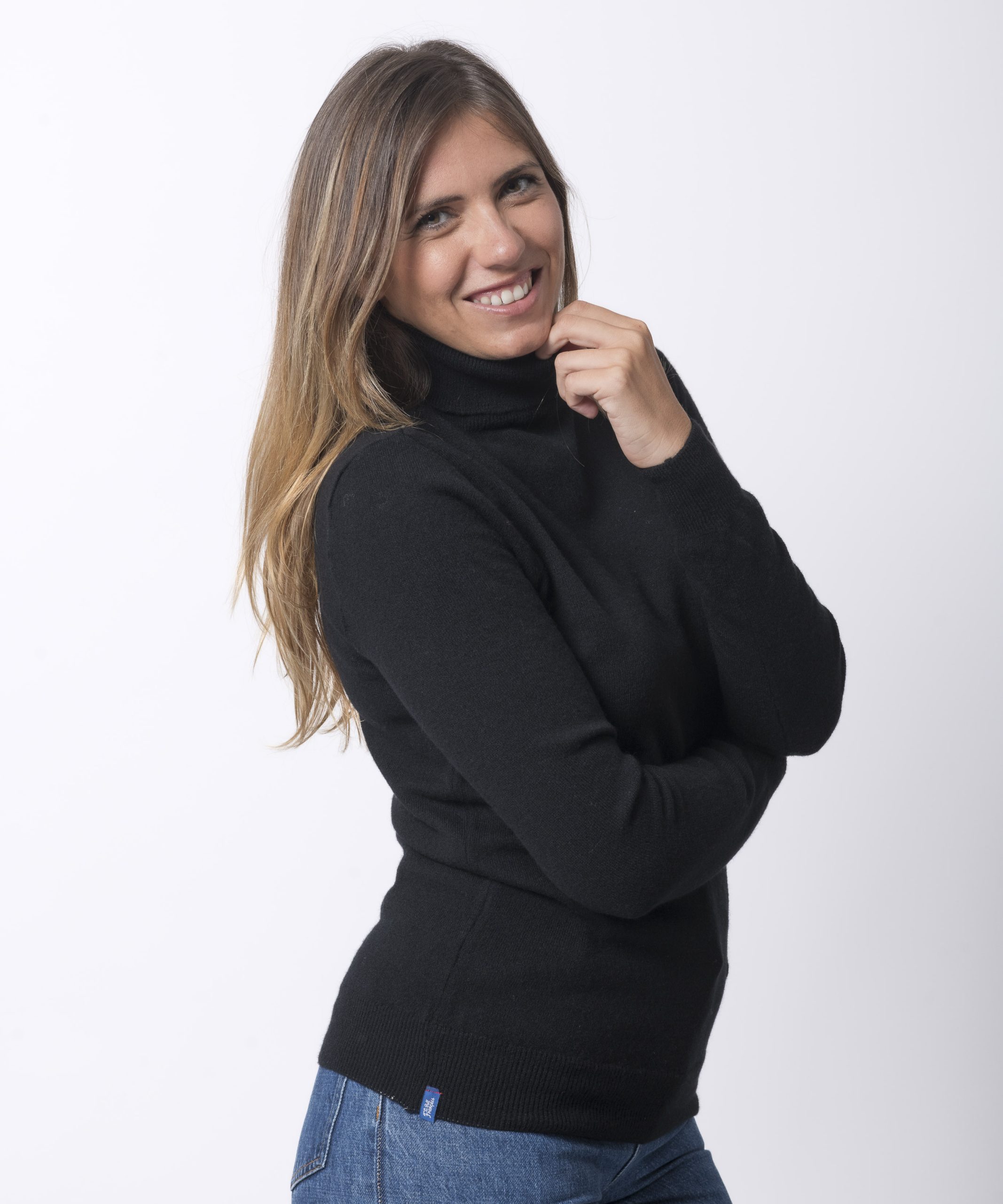 Pull Col Roulé Femme Noir Merinos-Cachemire – Augustine