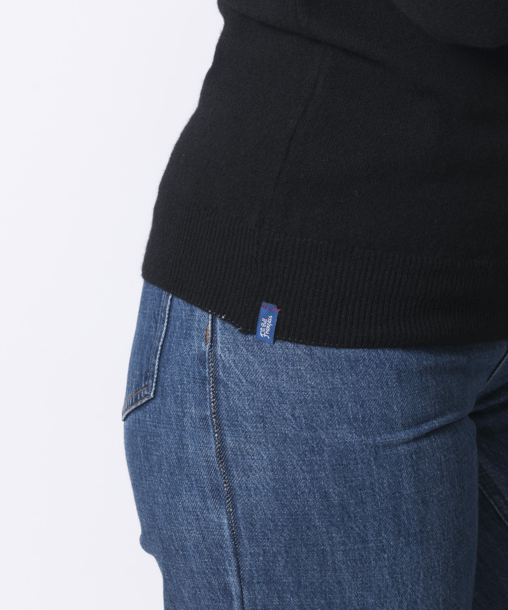 Le col, les manches et les bords côtes de ce pull femme sont entièrement remaillés à la main avec une reprise maille par maille. Cela donne une couture très fine à peine perceptible au toucher et surtout qui offre un grand confort au porté.