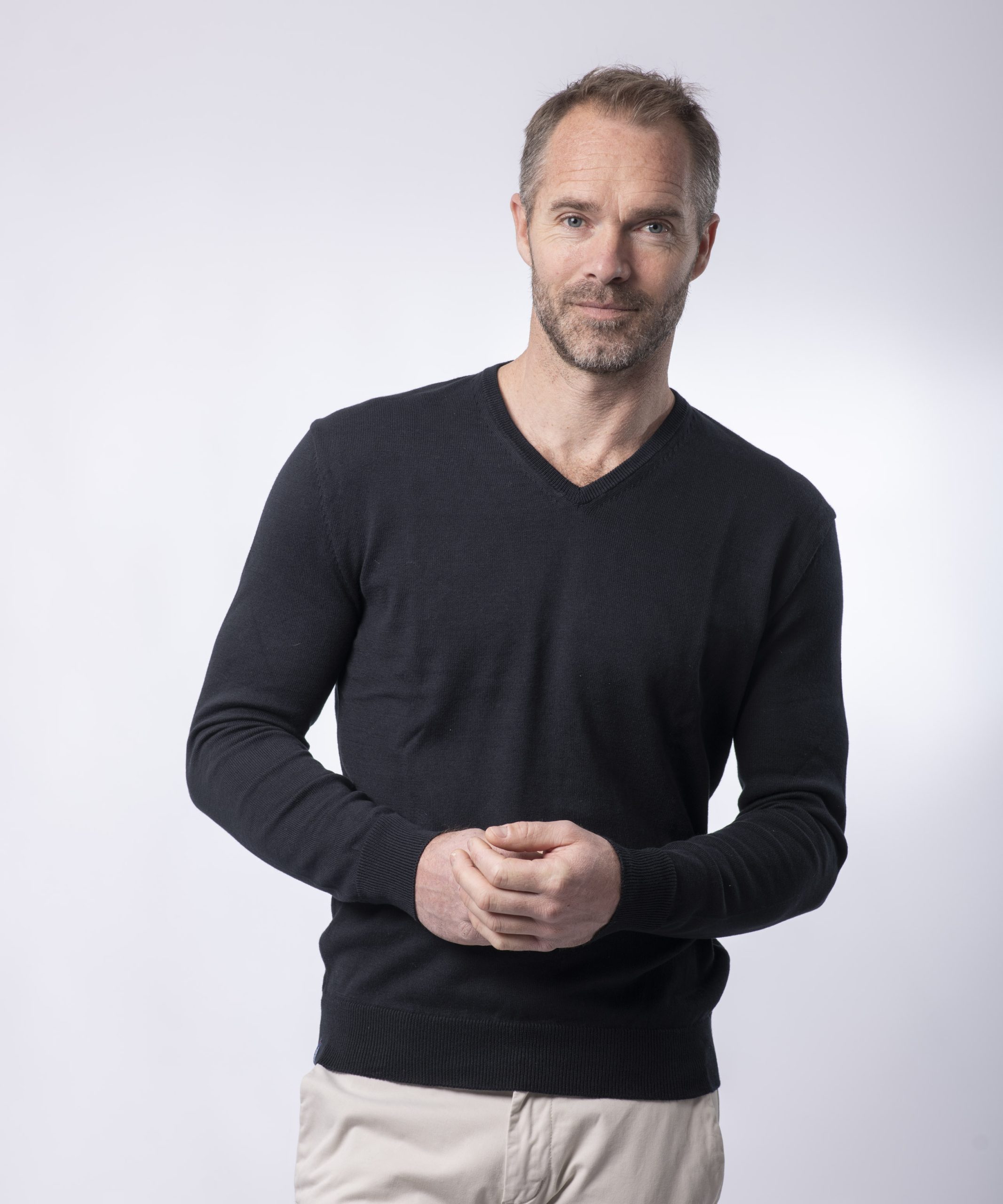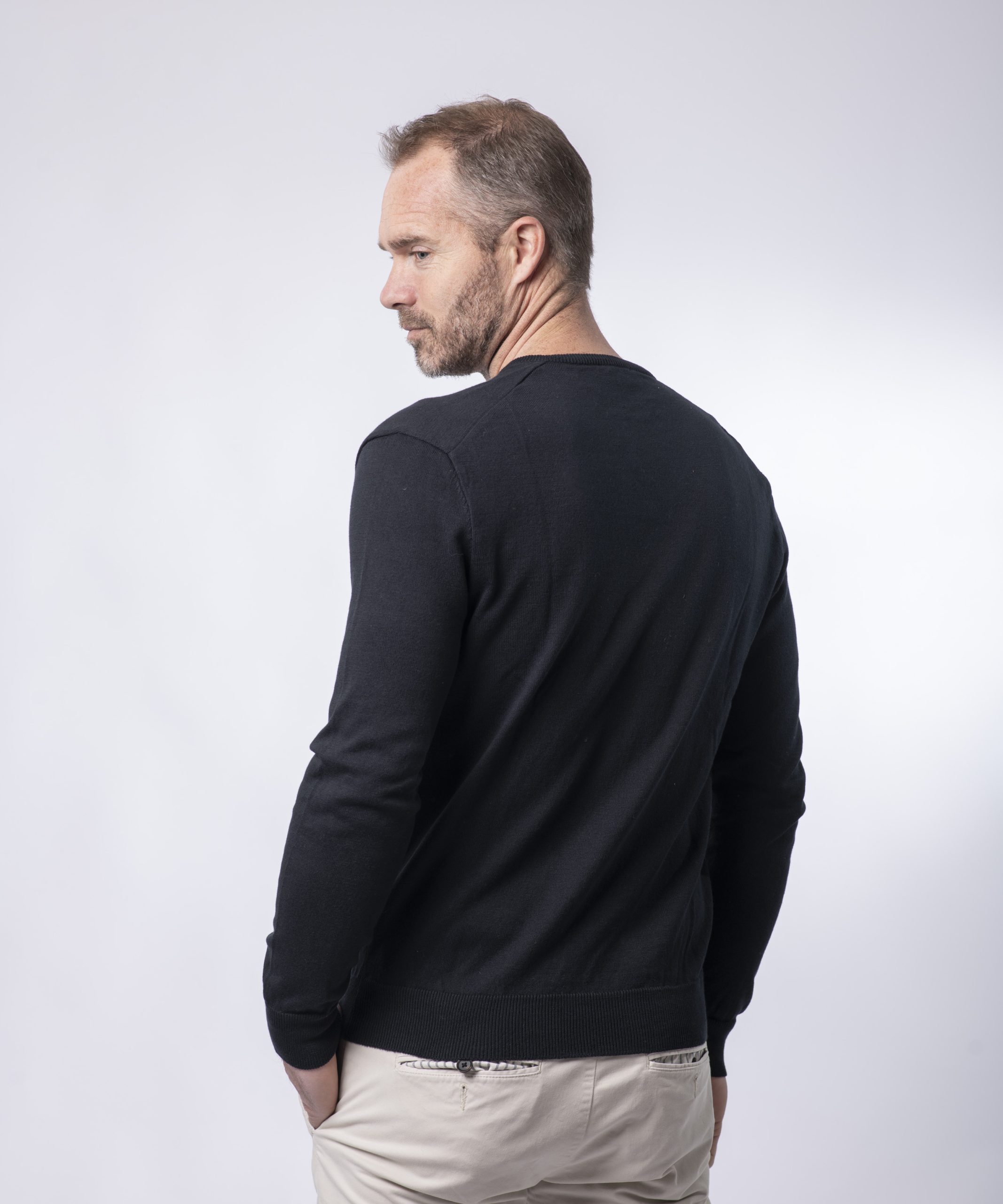 Le pull col V homme César noir en coton bio est un incontournable à de la garde robe masculine