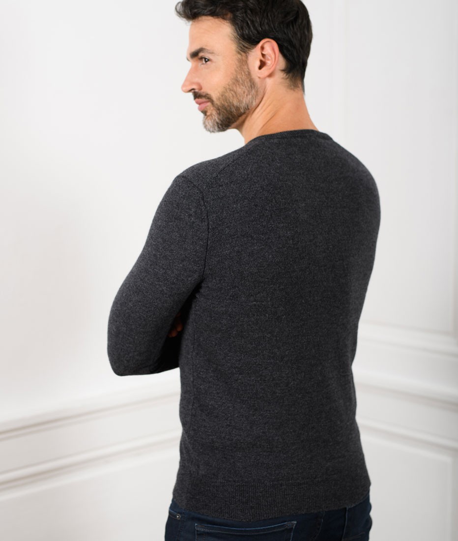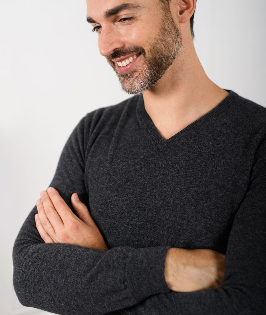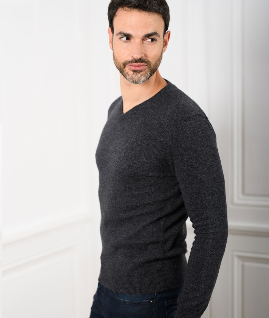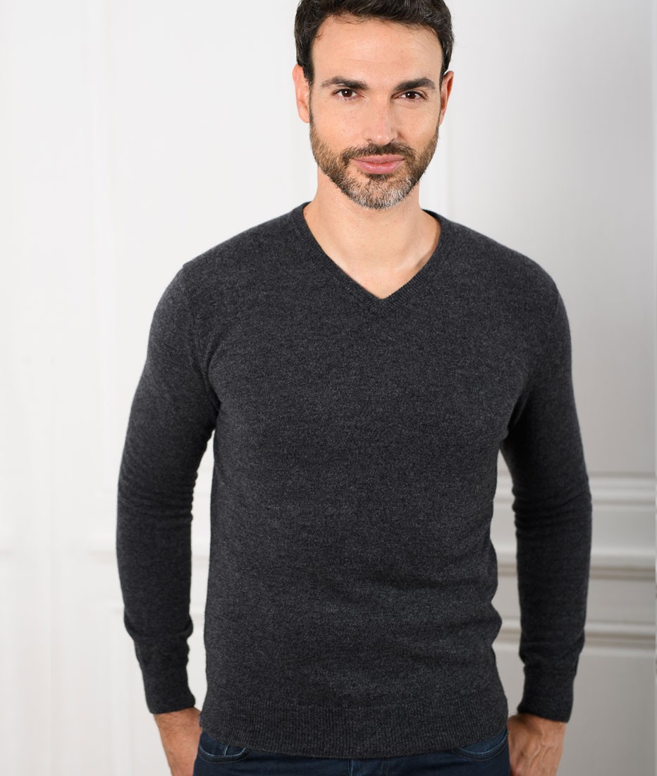Pull Col V Homme Gris Anthracite Merinos-cachemire – César