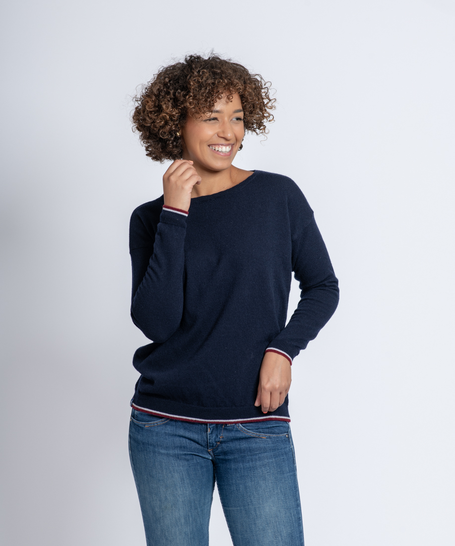 Pull Col Bateau Femme Marine Merinos-Cachemire – Lili