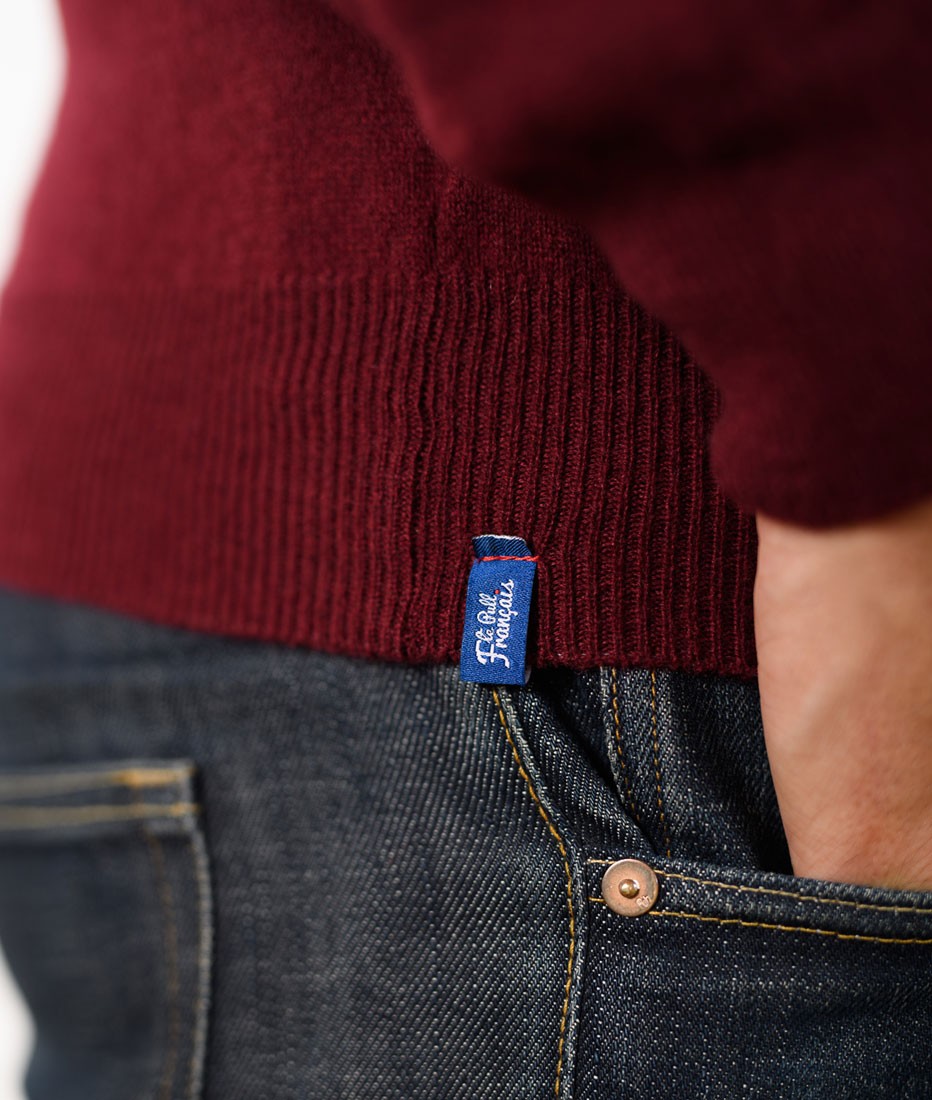 Le pull col rond homme Marcel bordeaux se porte aussi bien à même la peau dans un style décontracté, qu’avec une chemise.