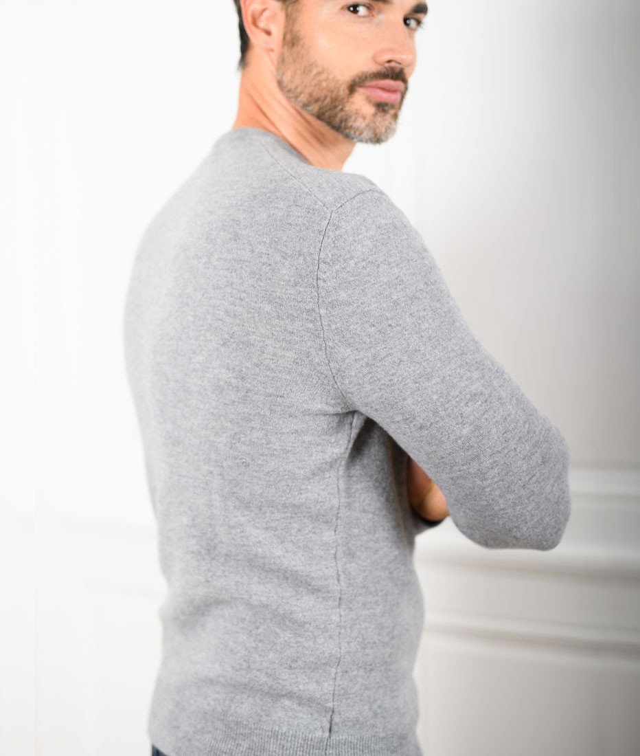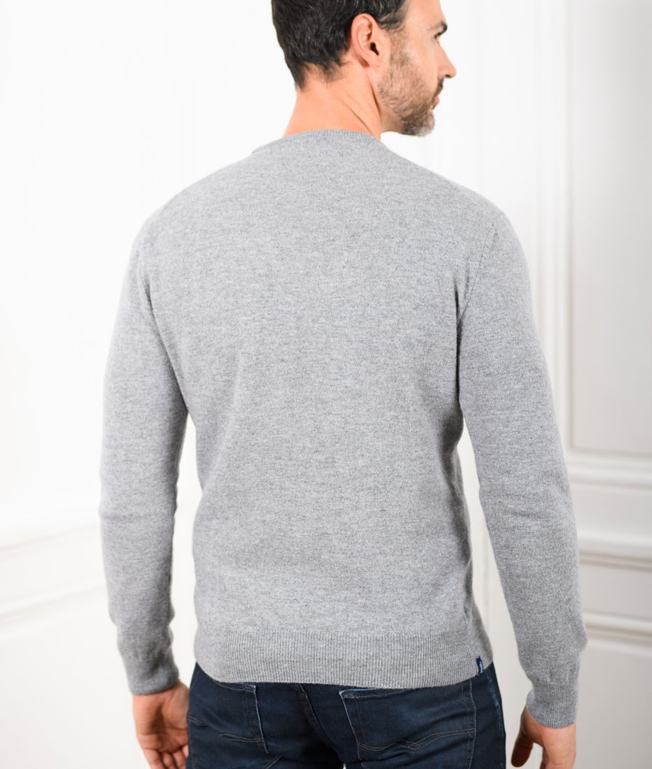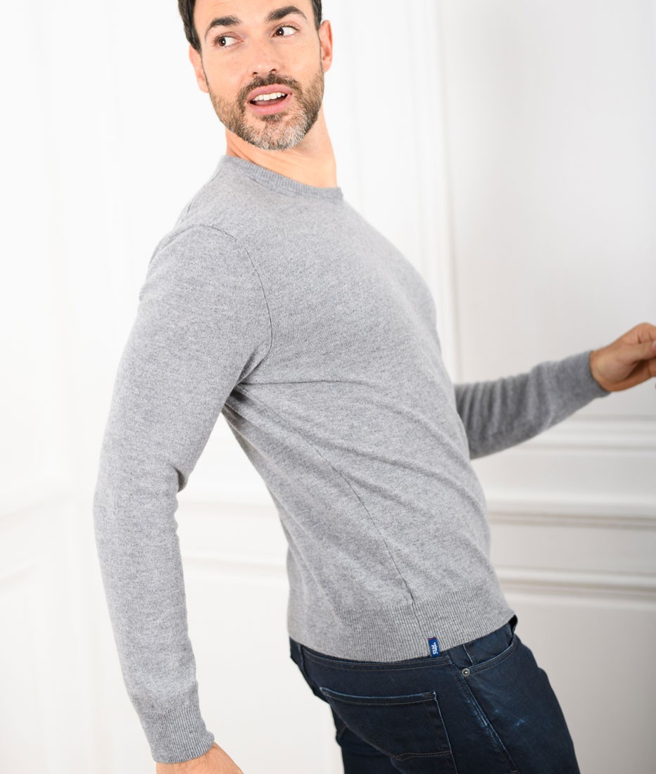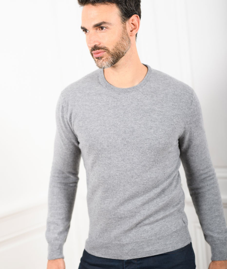Pull Col Rond Homme Gris Chiné Merinos-Cachemire – Marcel