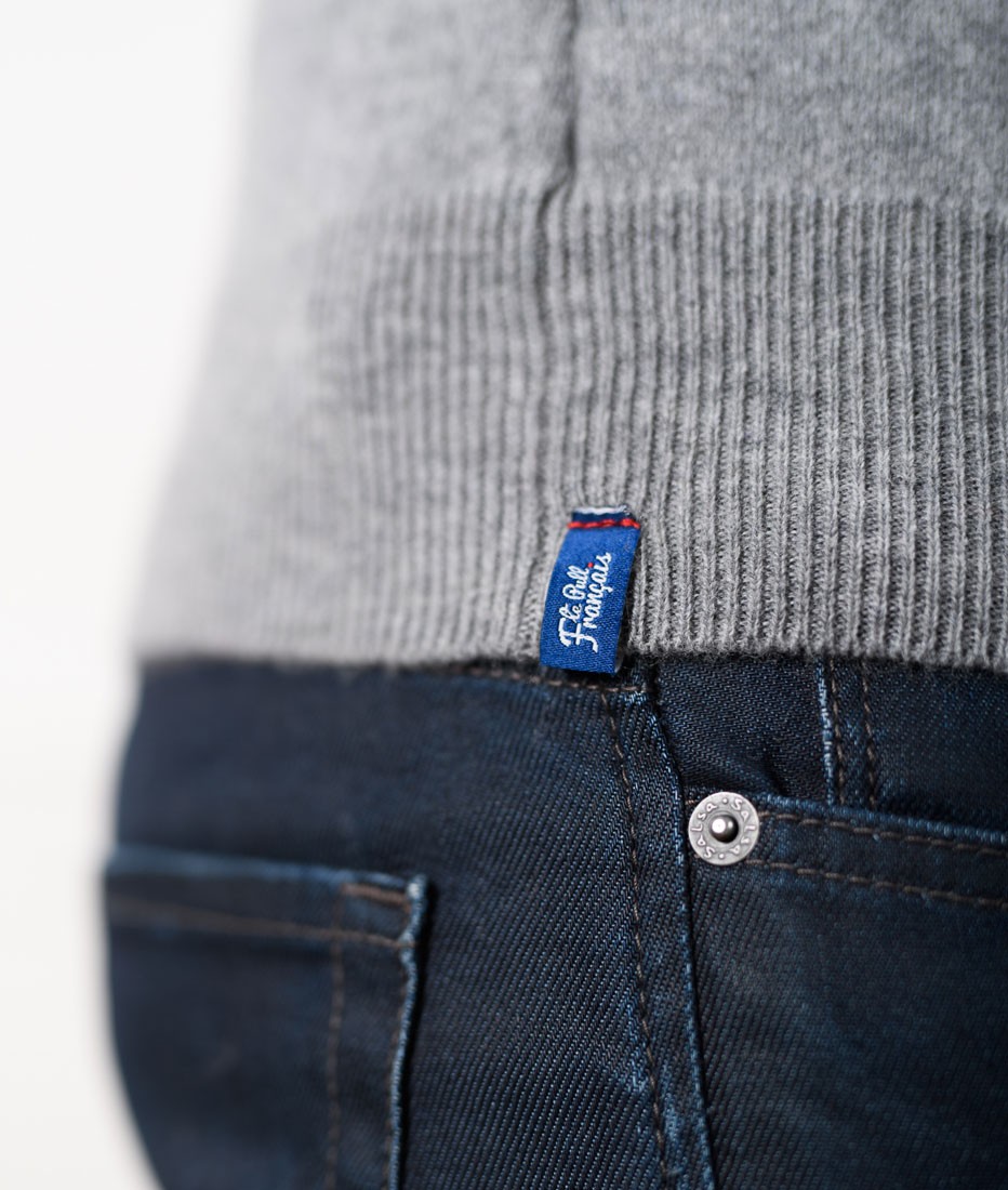 Le col, les manches et les bords côtes de ce pull homme sont entièrement remaillés à la main avec une reprise maille par maille. Cela donne une couture très fine à peine perceptible au toucher et surtout qui offre un grand confort au porté.