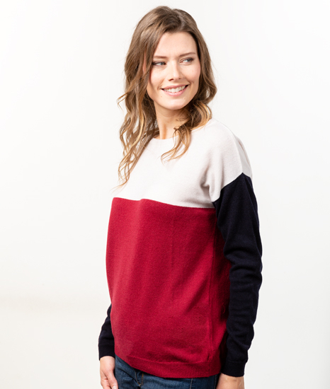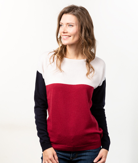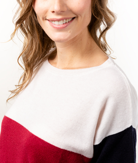 Pull Col Bateau Femme Tricolore Merinos-cachemire – Marianne