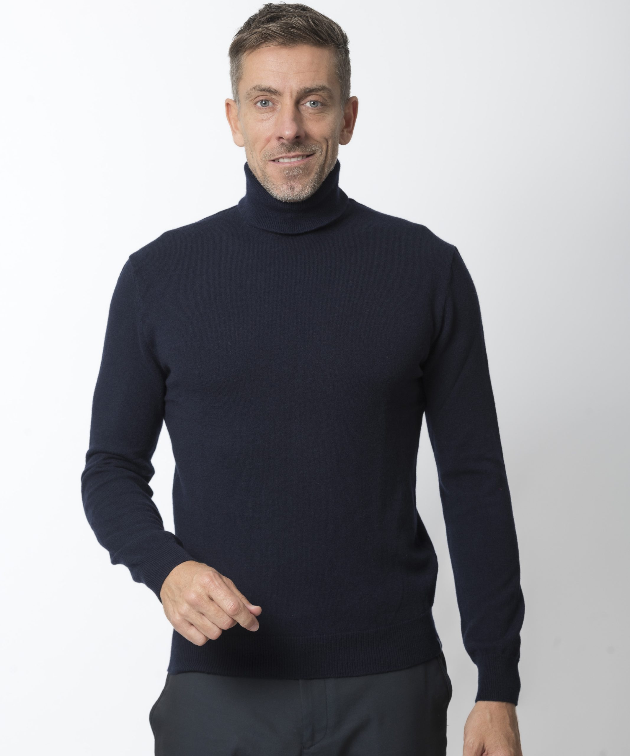 Pull Col Roulé Homme Marine Merinos-Cachemire – Ugolin