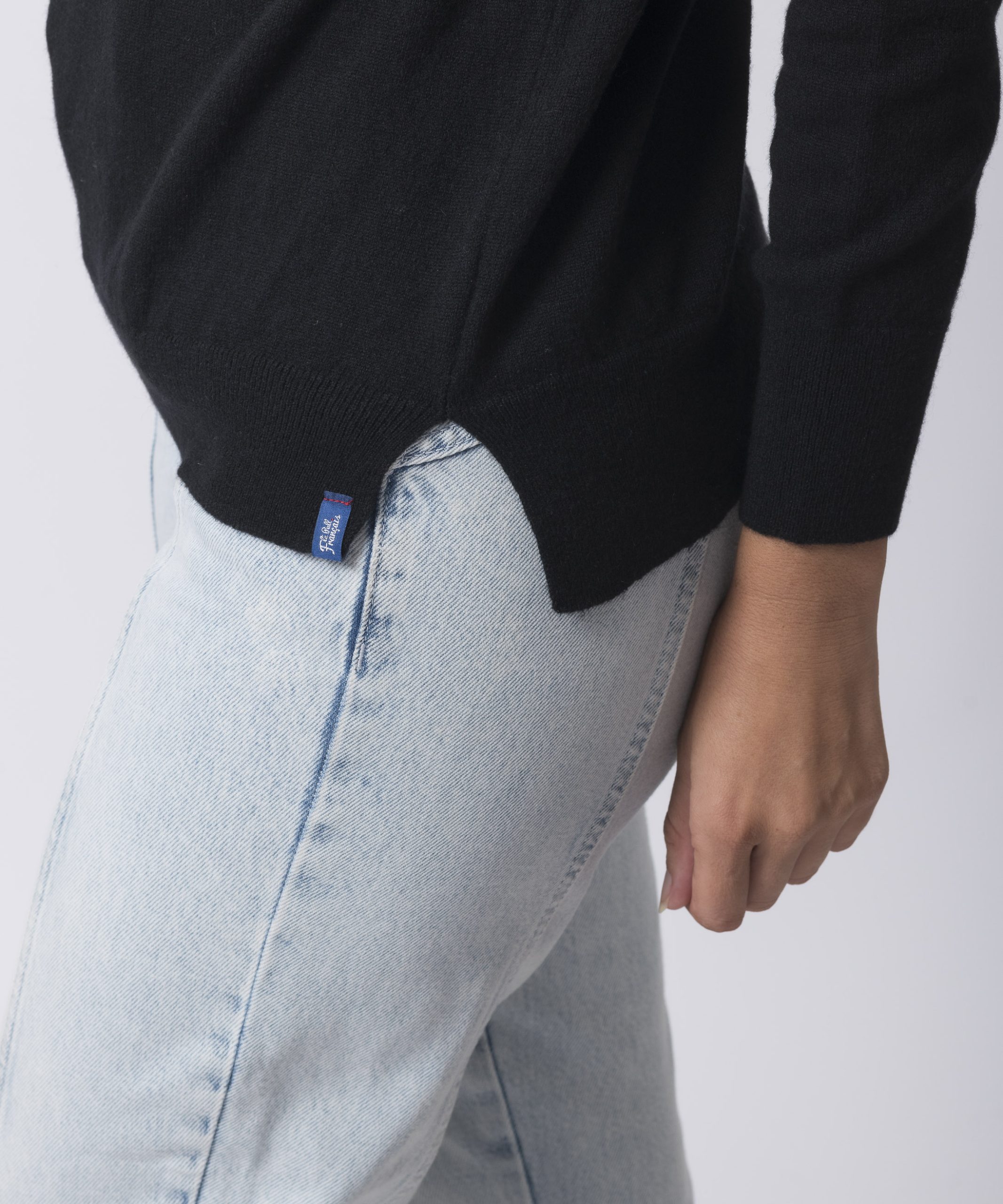 La vignette située au bas du pull est signée au nom de la marque pour une finition soignée et discrète. Pour la signature, comme pour l'ensemble de nos étiquettes, nous avons choisi la fabrication française et la matière la plus soyeuse, car même dans les détails, nous souhaitons une qualité irréprochable !