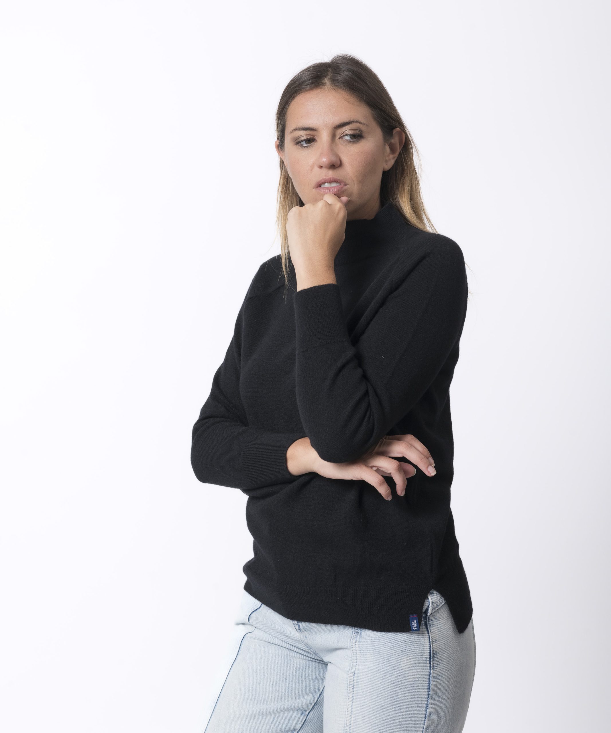PULL COL MONTANT FEMME NOIR Merinos-cachemire – BAPTISTINE
