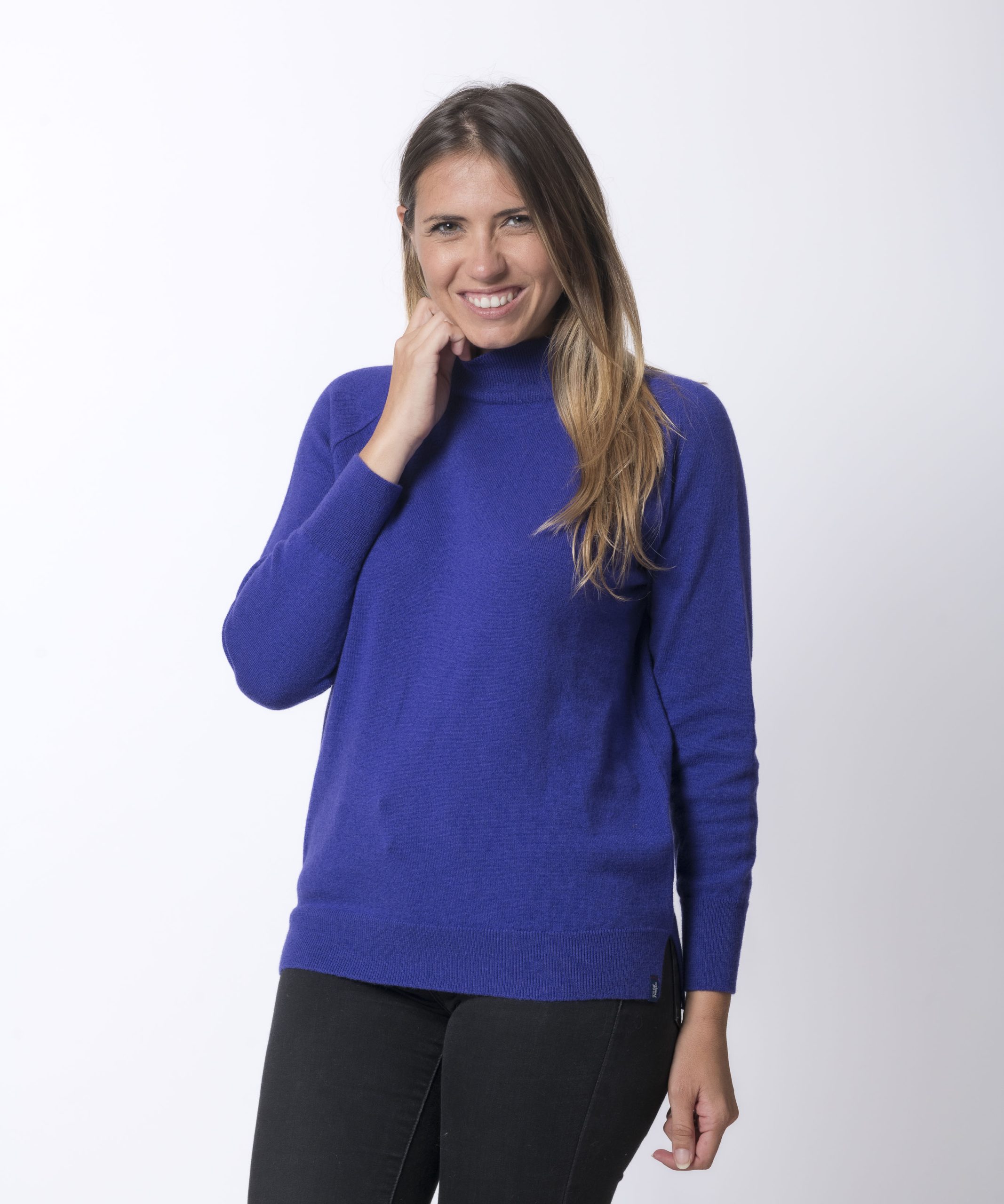 Pour la confection de votre pull col montant femme made in France nous avons choisi l'association de deux matières naturelles très nobles : la laine mérinos extrafine et le cachemire.