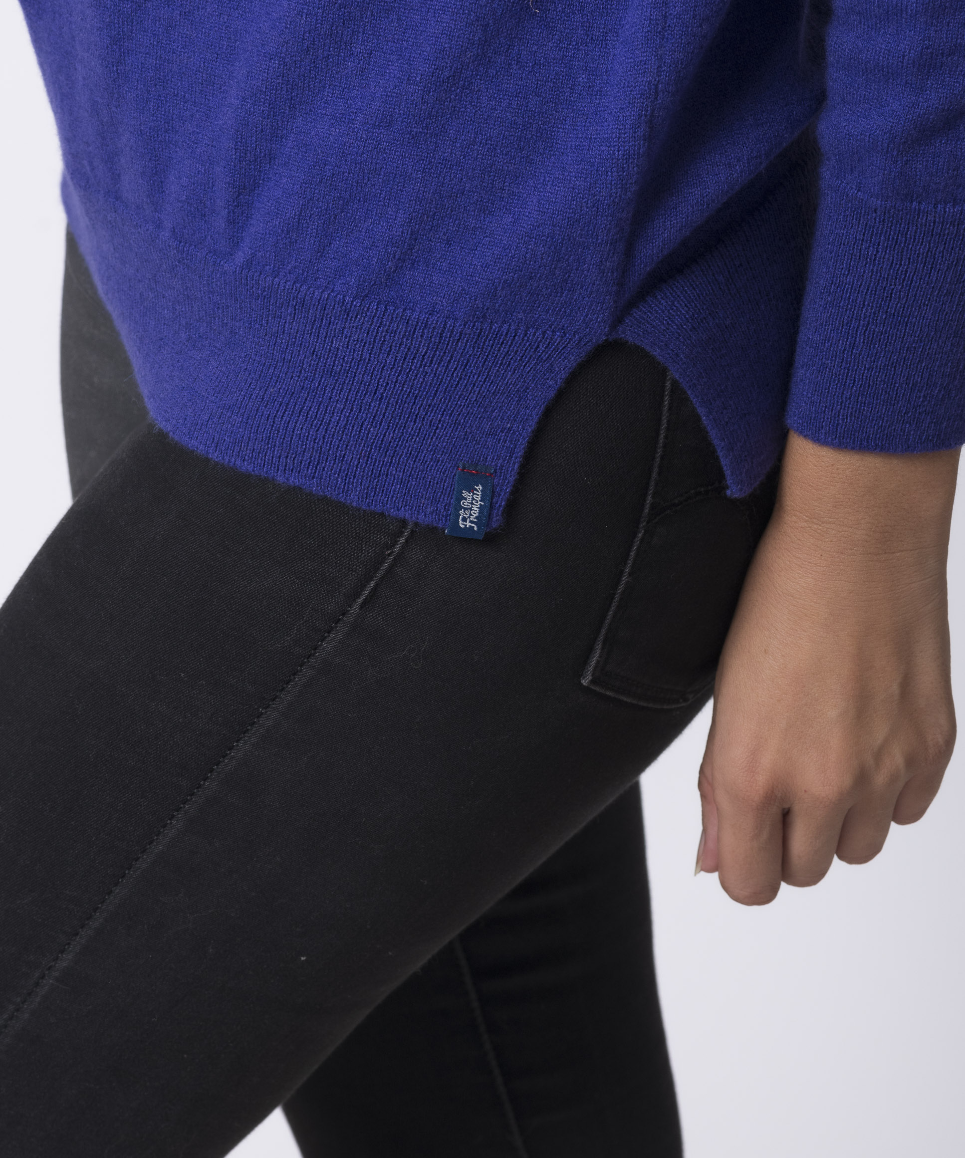 La vignette située au bas du pull est signée au nom de la marque pour une finition soignée et discrète. Pour la signature, comme pour l'ensemble de nos étiquettes, nous avons choisi la fabrication française et la matière la plus soyeuse, car même dans les détails, nous souhaitons une qualité irréprochable !