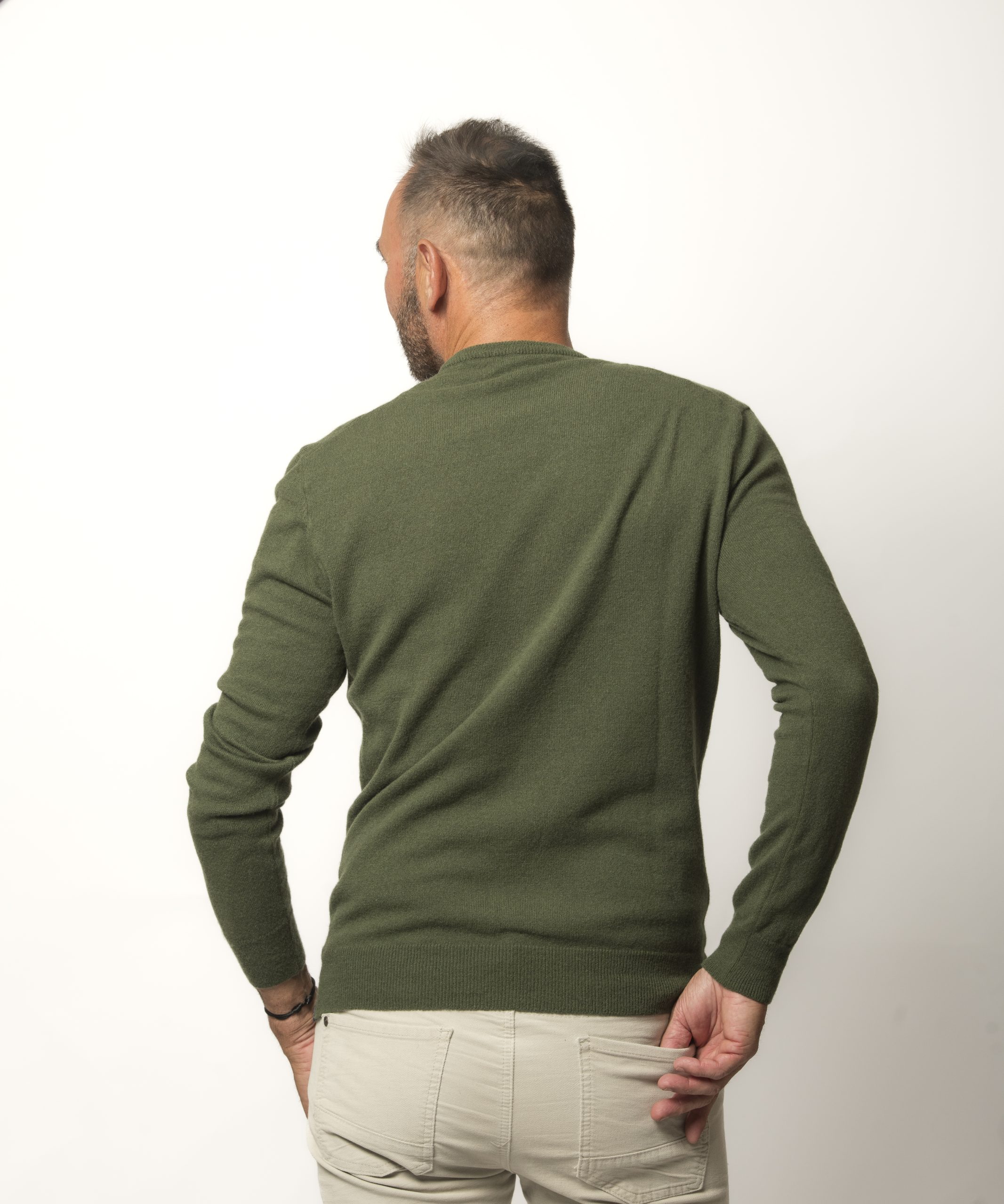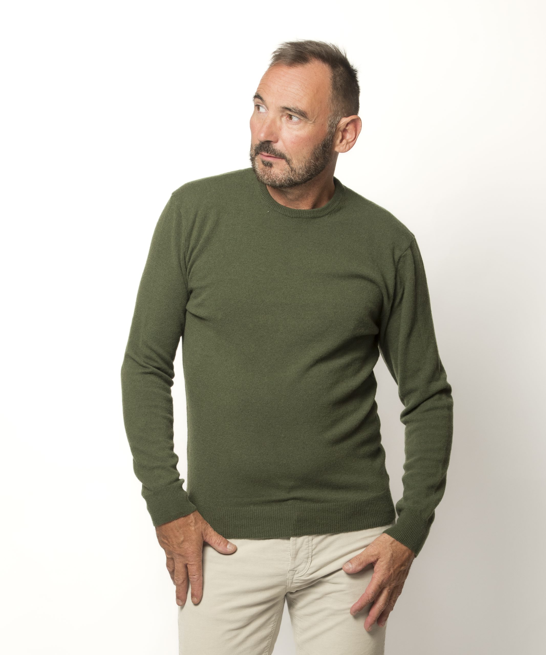 Pull Col Rond Homme Kaki Merinos-cachemire – Marcel