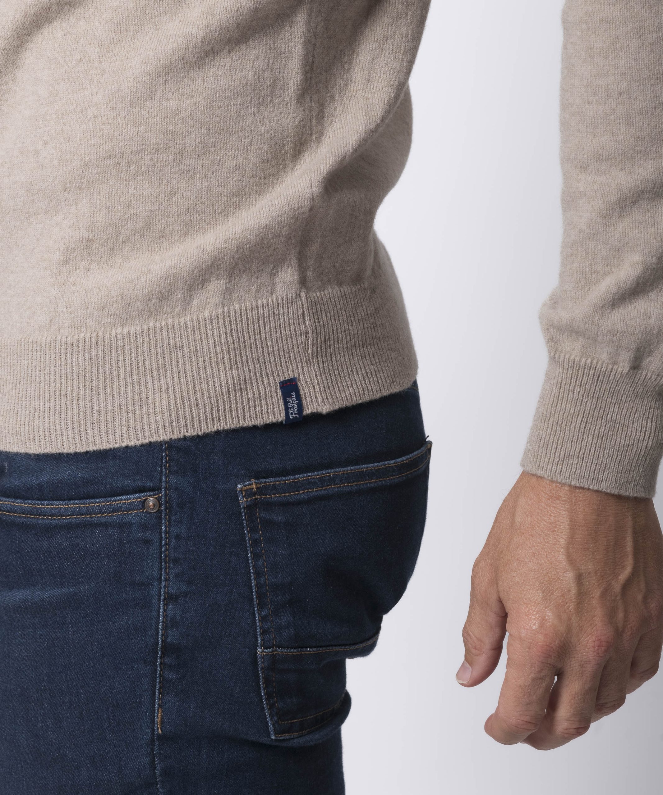La vignette située au bas du pull est signée au nom de la marque pour une finition soignée et discrète. Pour la signature, comme pour l'ensemble de nos étiquettes, nous avons choisi la fabrication française et la matière la plus soyeuse, car même dans les détails, nous souhaitons une qualité irréprochable !
