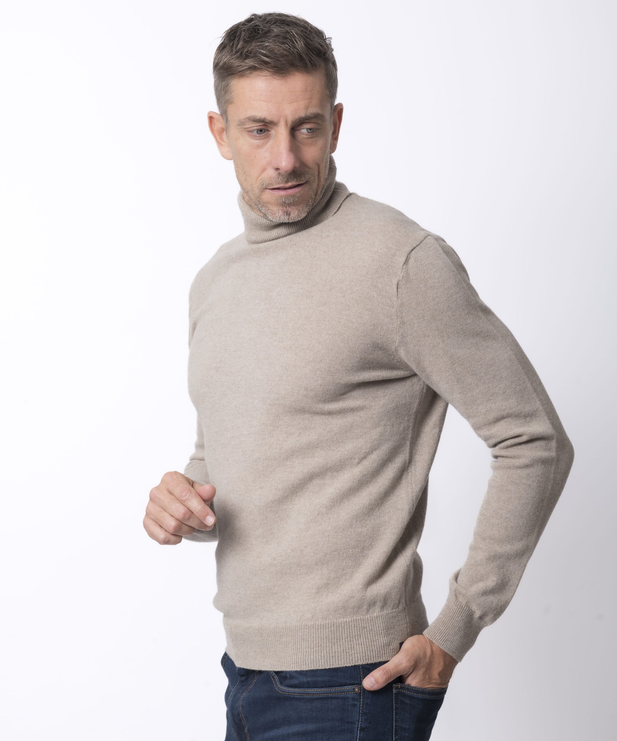 Pull col roulé homme Beige Merinos-cachemire – Ugolin