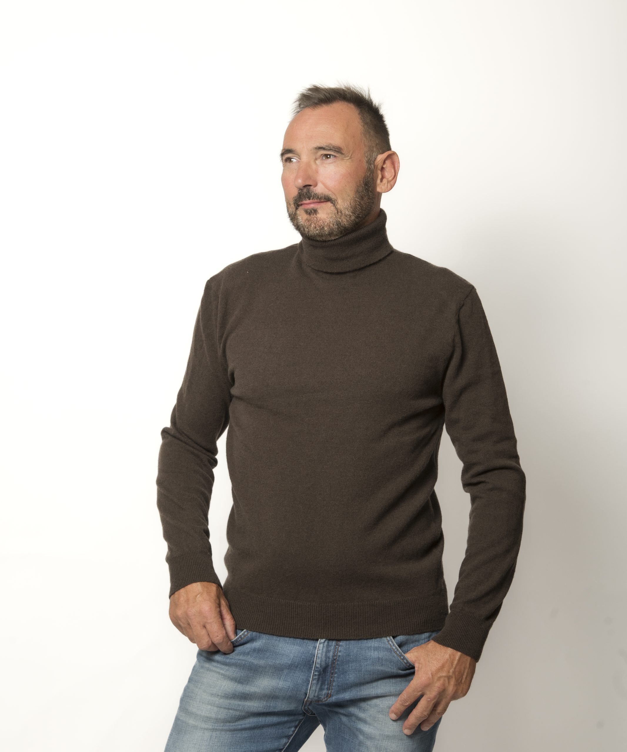 Pull Col Roulé Homme Marron Mérinos-Cachemire – Ugolin