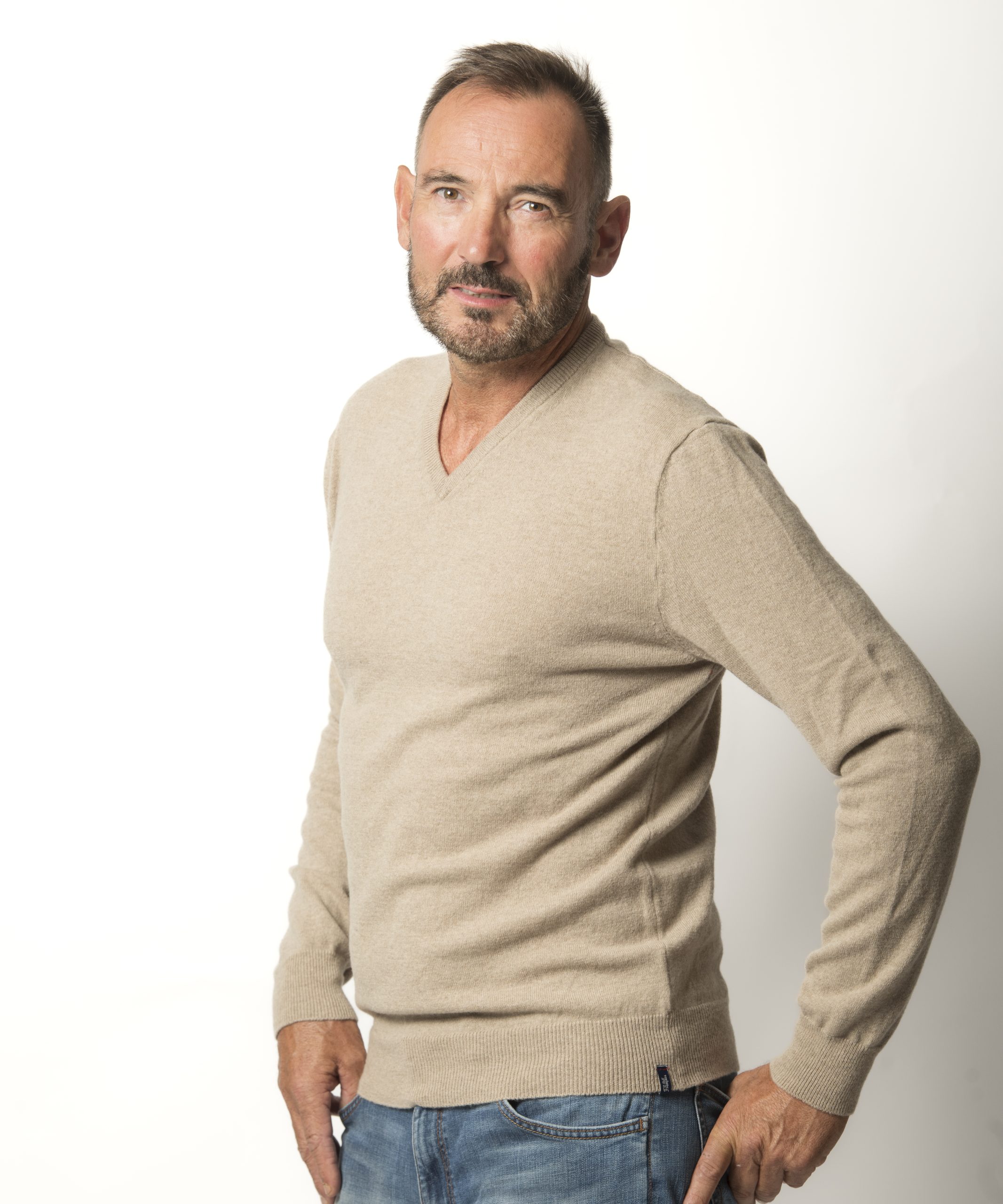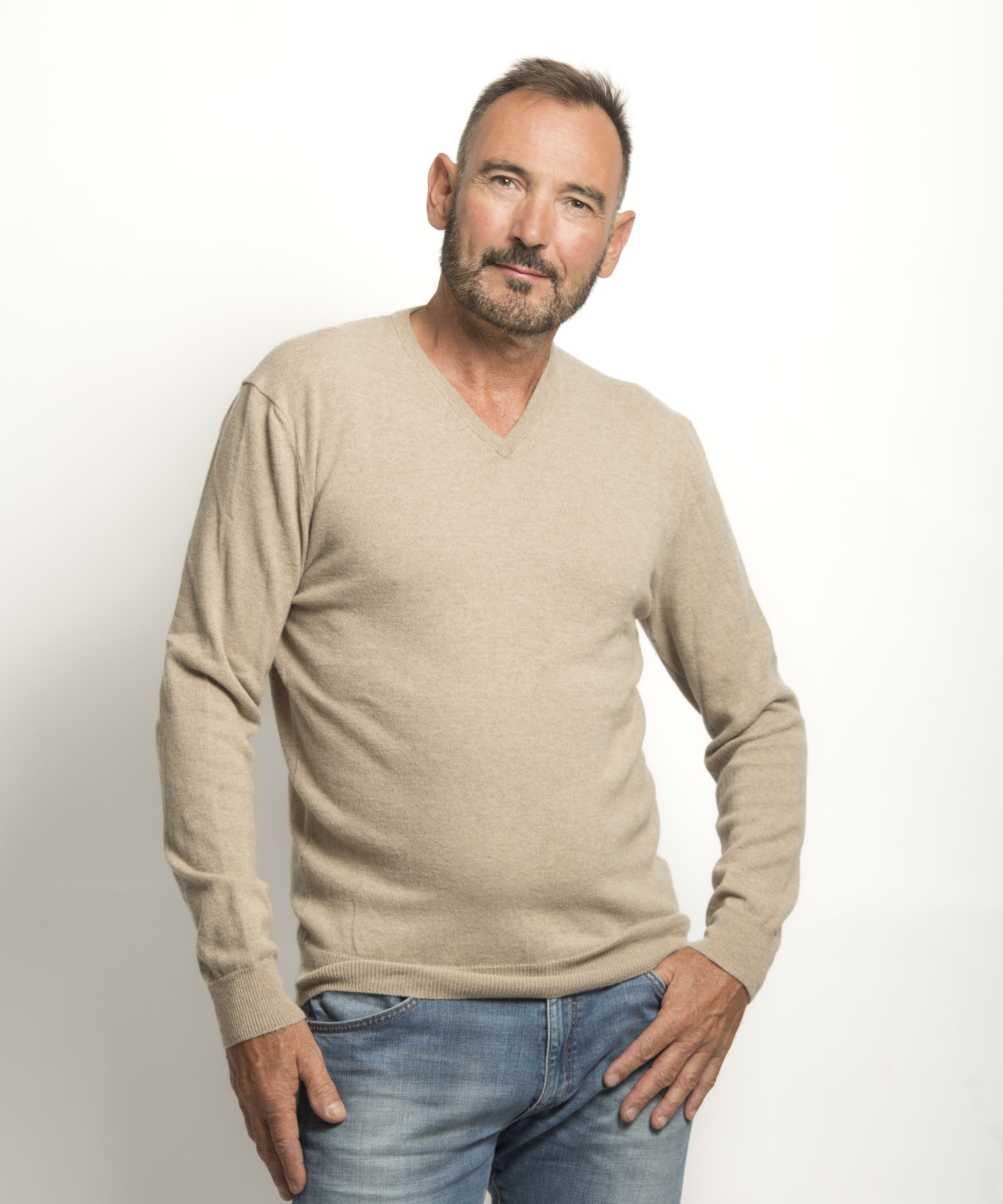 Pull Col V Homme Beige Mérinos-cachemire- César