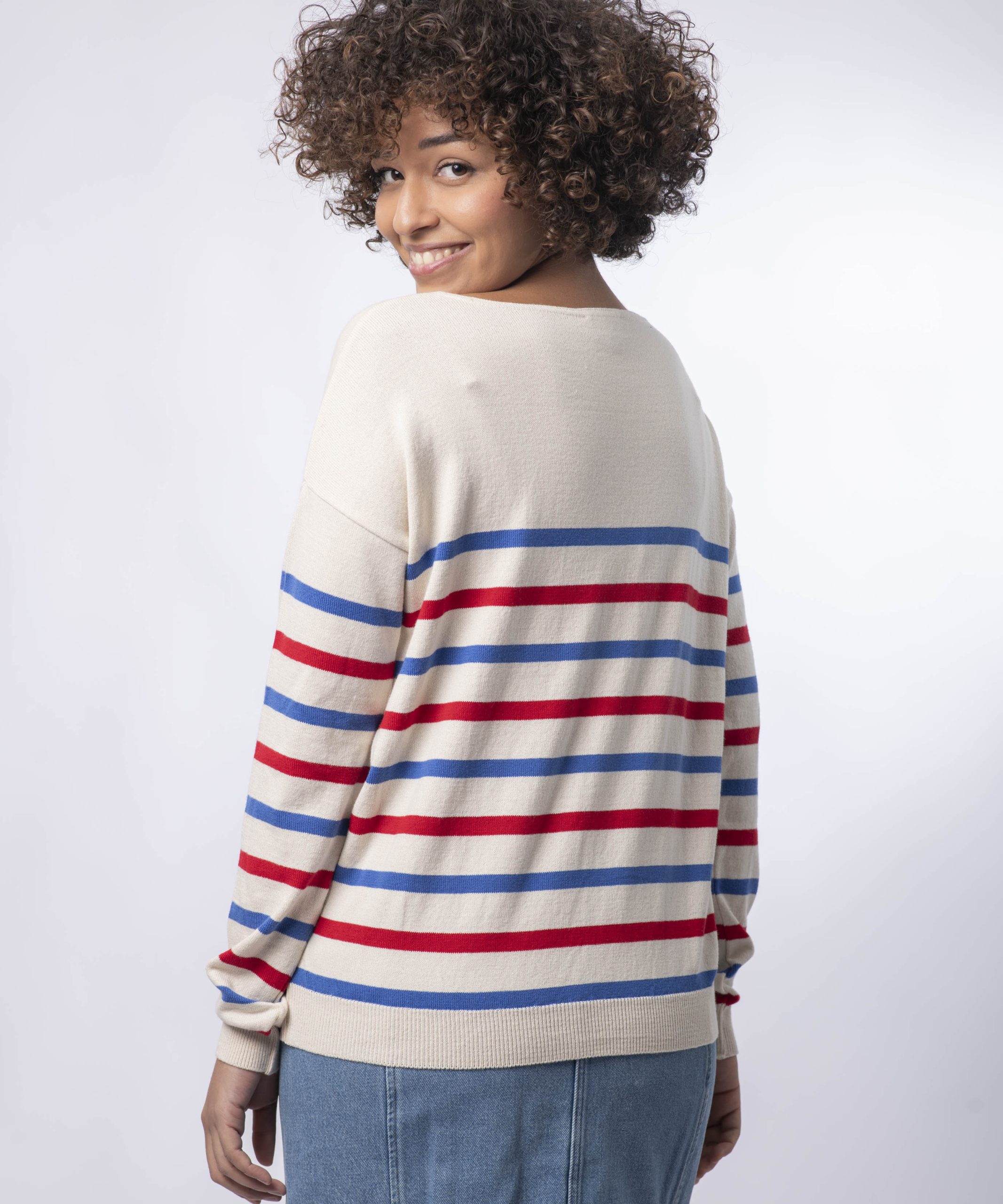Le modèle Marine col rond pour femme, en écru et en coton bio reste un incontournable de la garde robe féminine