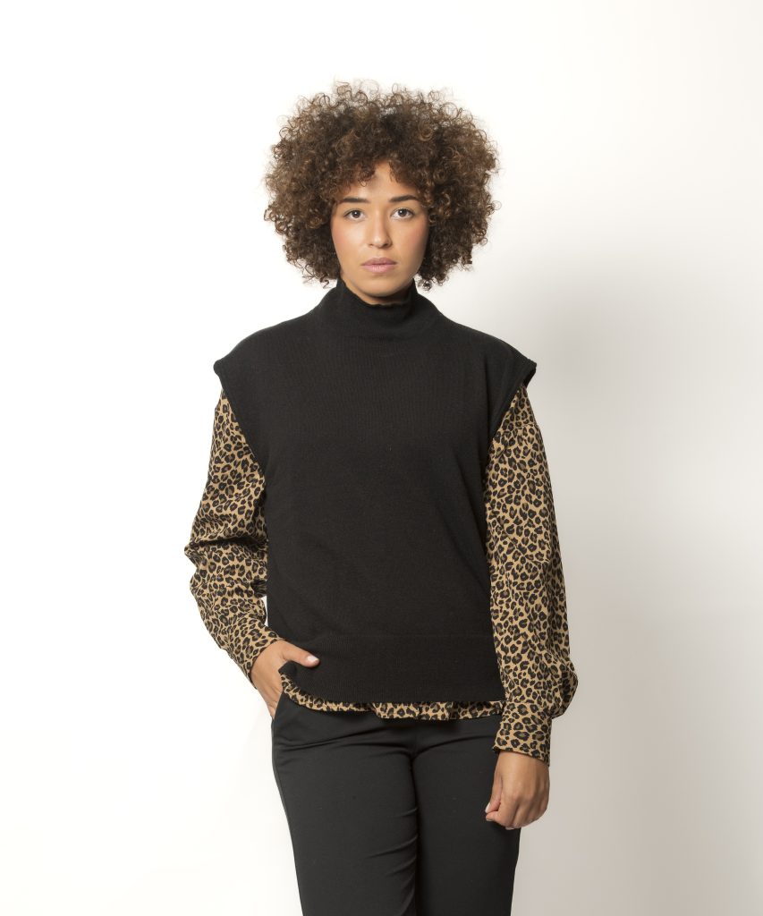 Le pull femme sans manches col montant Agathe noir est une véritable trouvaille.