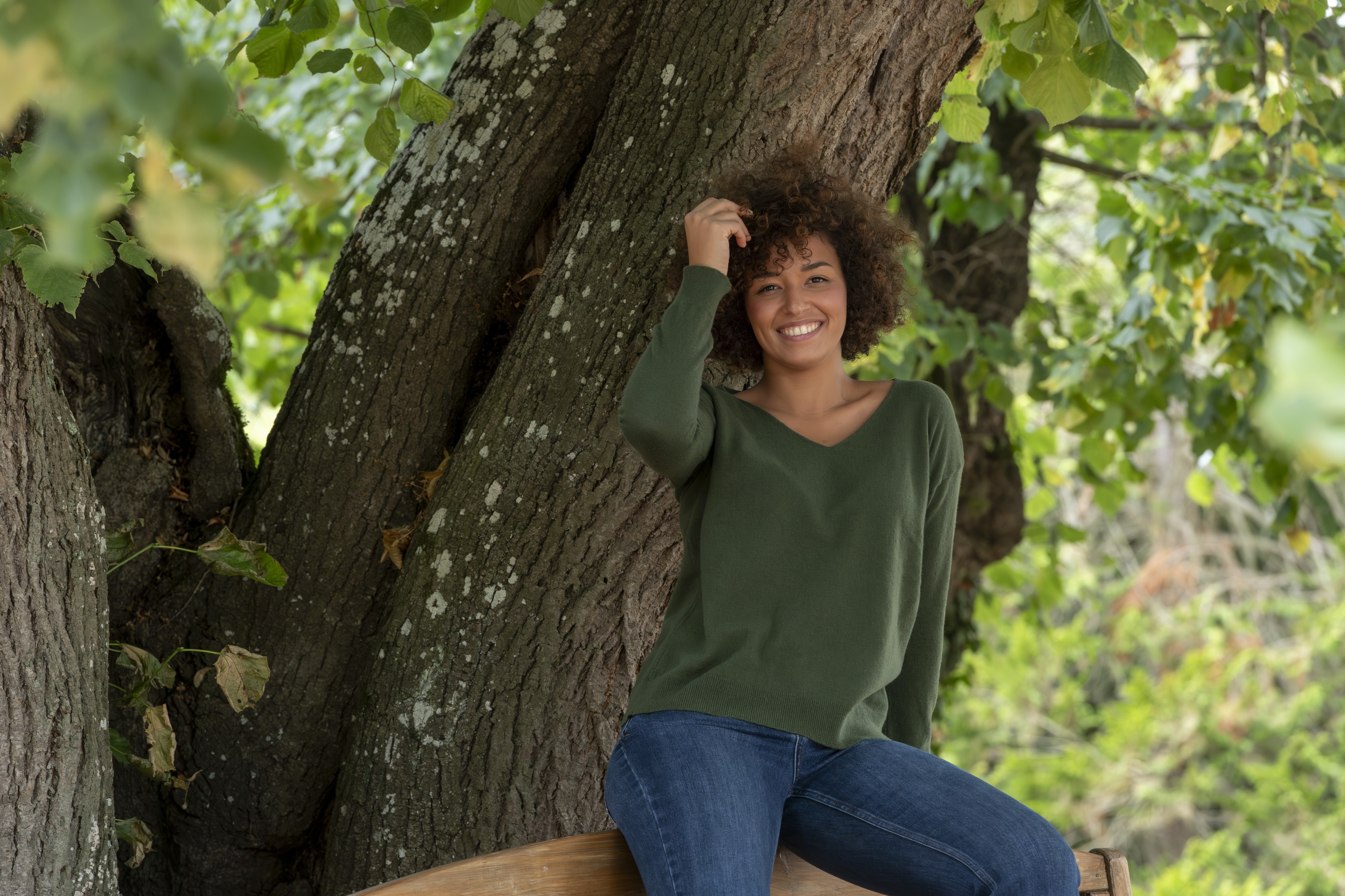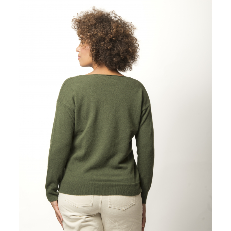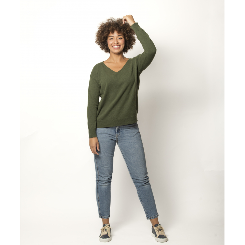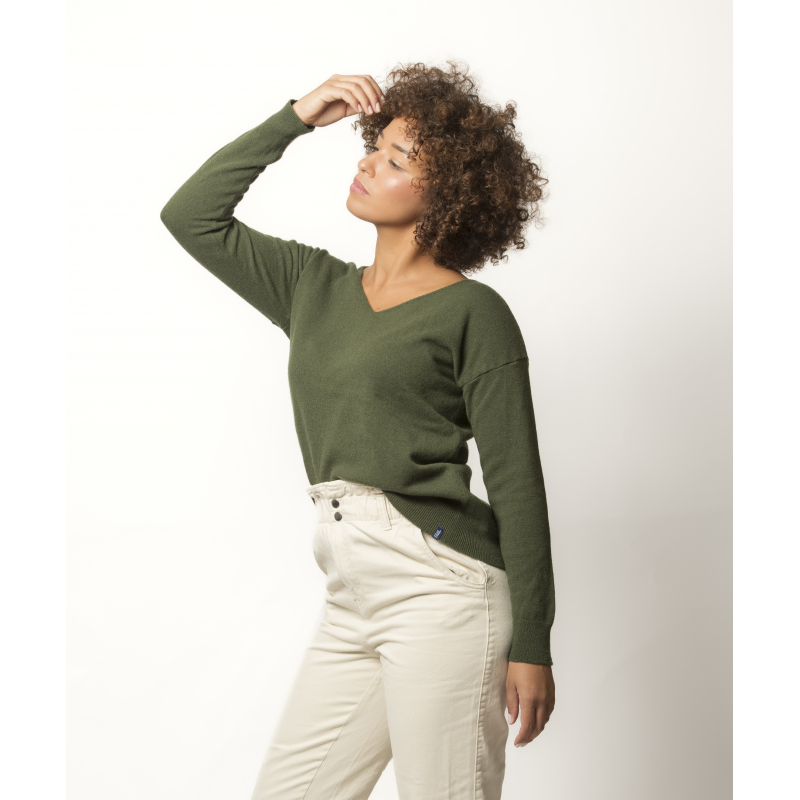 Pull Col V Femme Kaki Merinos-Cachemire Margot