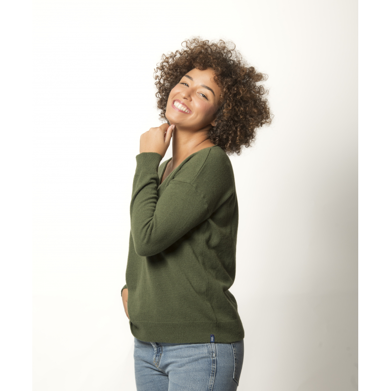 Le pull col V femme Margot Kaki, une nouveauté pour nous, est un classique de la garde robe féminine avec un style moderne et élégant.