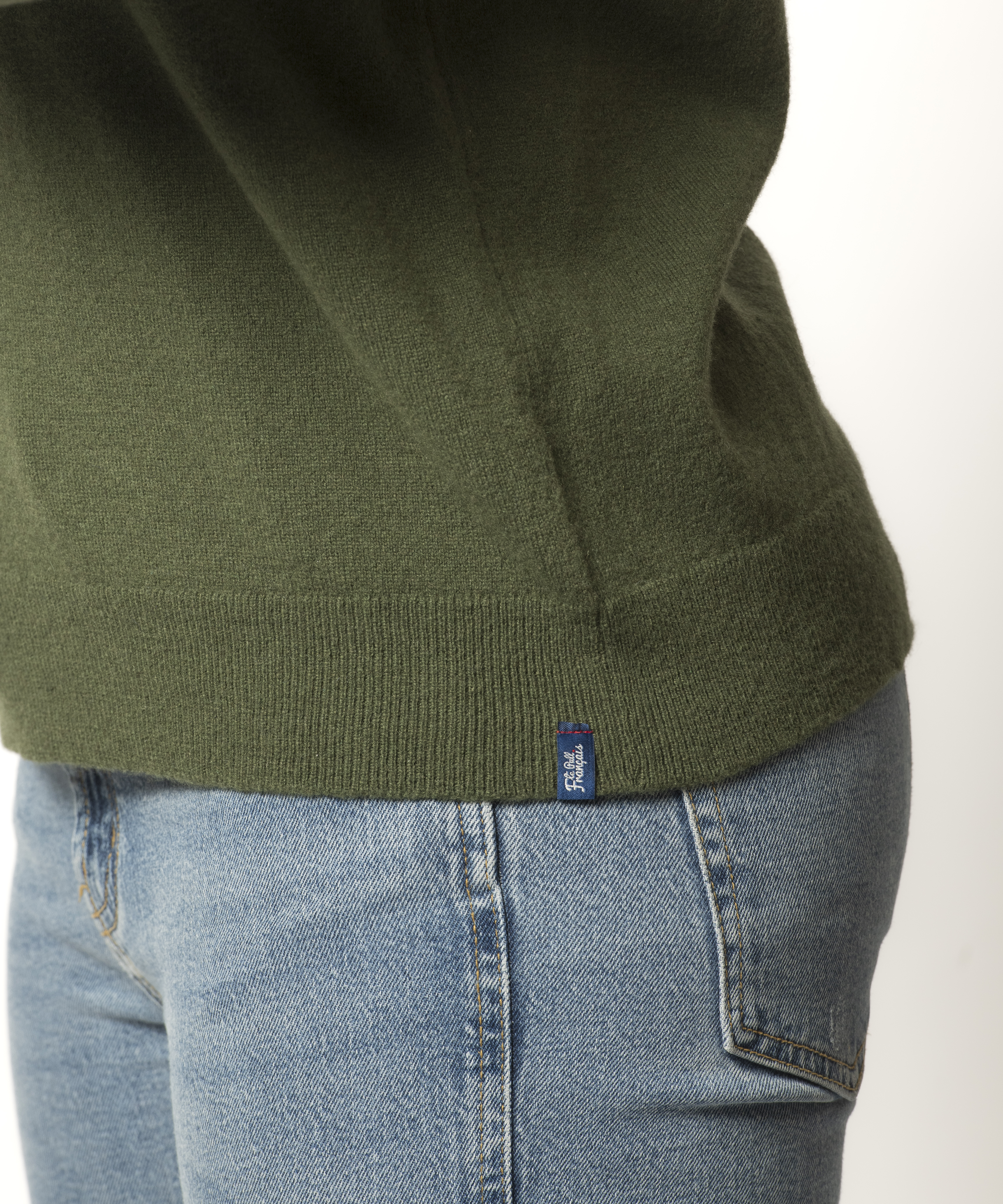 Le col V, les manches et les bords côtes de ce pull femme sont entièrement remaillés à la main avec une reprise maille par maille. Cela donne une couture très fine à peine perceptible au toucher et surtout qui offre un grand confort au porté.