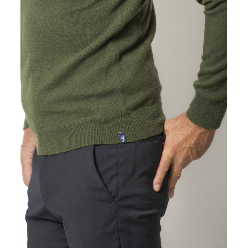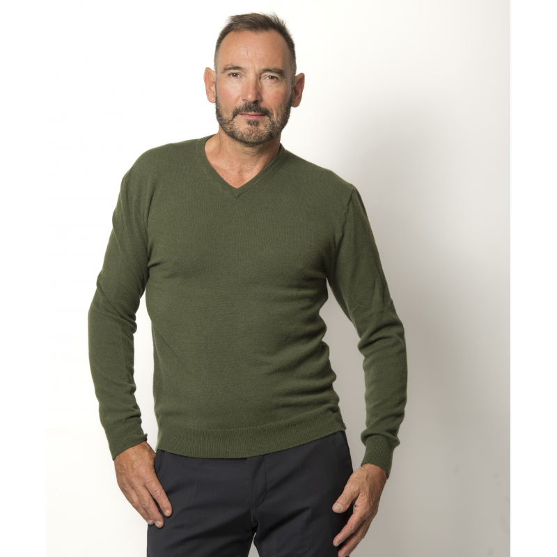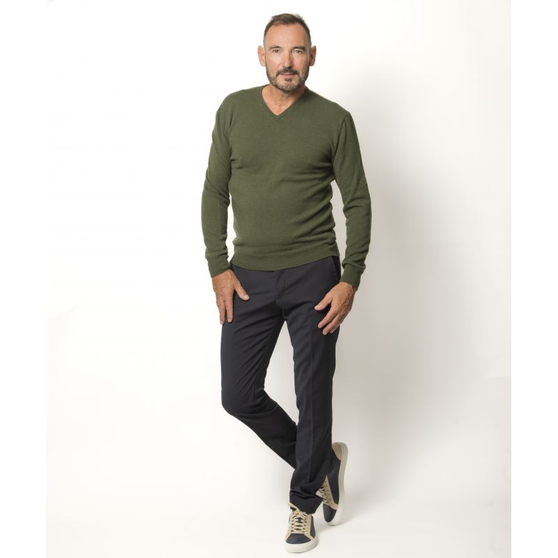 Pull Col V Homme Kaki Mérinos-cachemire- César